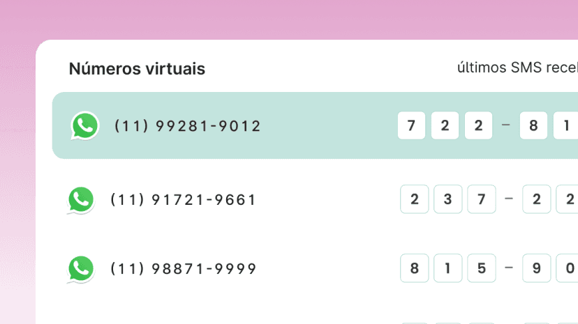 Números virtuais para WhatsApp Business com ativação simples, rápida e sem precisar de chip. Integração direta com seu produto via Webhook, garantindo mais eficiência para a sua operação.