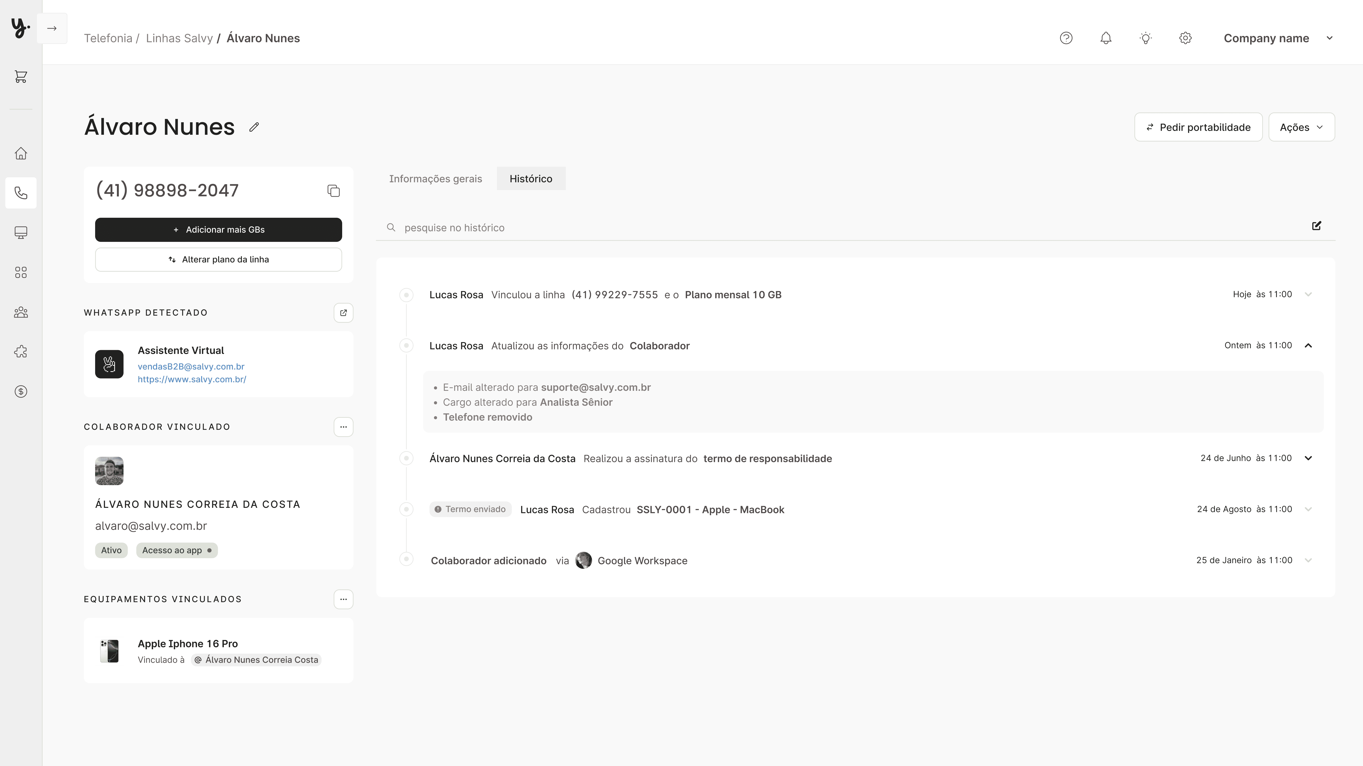 Ativação e cancelamento de linhas em instantes, direto na plataforma da Salvy.