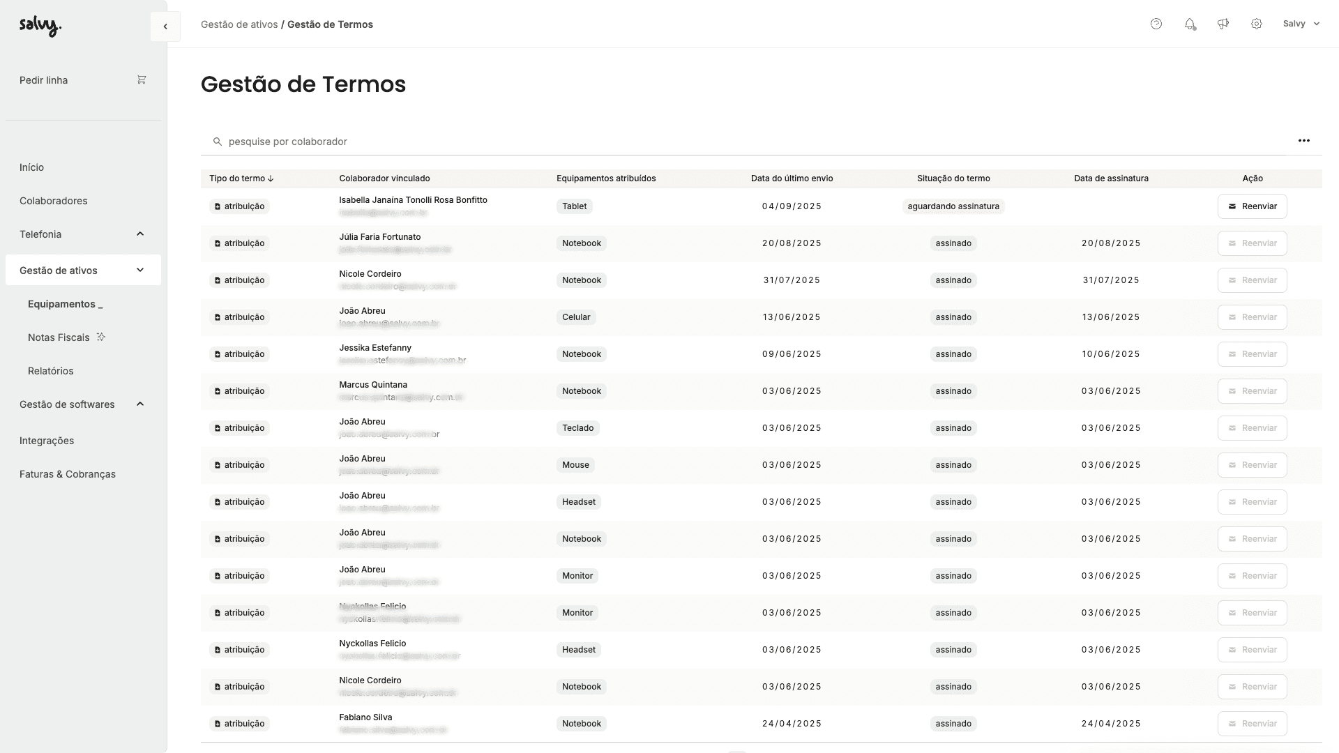 A ideia dessa nova página é facilitar a gestão de documentos de assinatura, especialmente termos de recebimento e devolução de ativos, centralizando tudo em um único lugar e deixando o acompanhamento mais simples.
