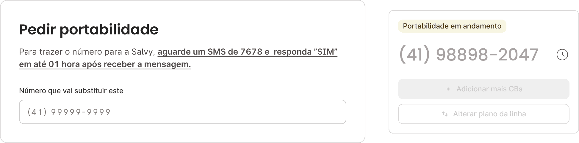 Mantenha seus números e migre para a Salvy com um processo 100% digital e rápido. Sem burocracia e com e acompanhamento em tempo real.